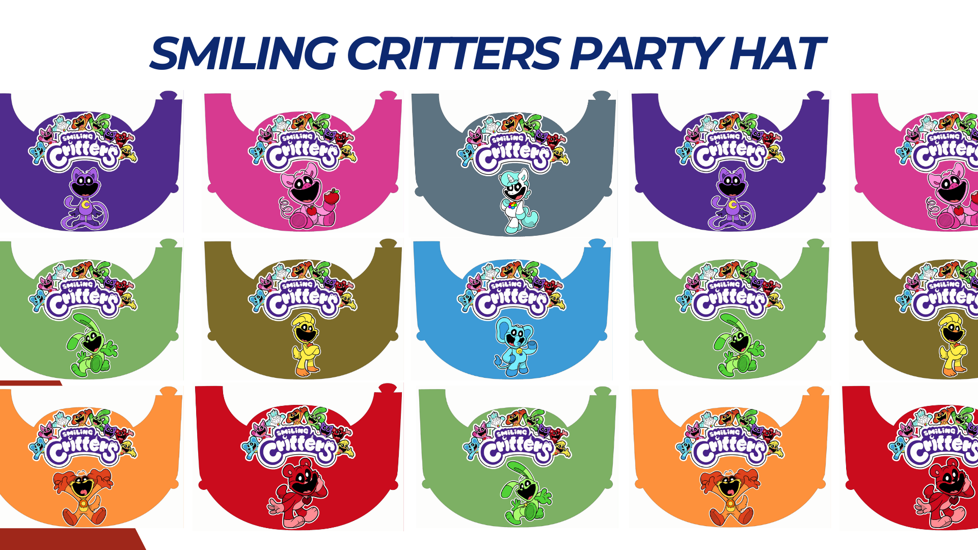 Smiling Critters Party Hat Template (8 Designs)